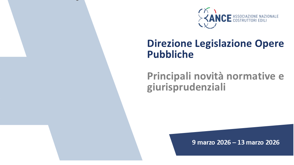 Legislazione Opere pubbliche: le principali novità normative e giurisprudenziali dal 9 marzo 2026 al 13 marzo 2026 13 Marzo 2026